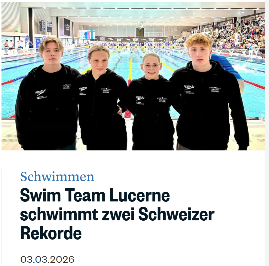 Geschrieben am 05. März 2026. Swim Team Lucerne schwimmt zwei Schweizer Rekorde Link zur Online-Ausgabe. Weiter