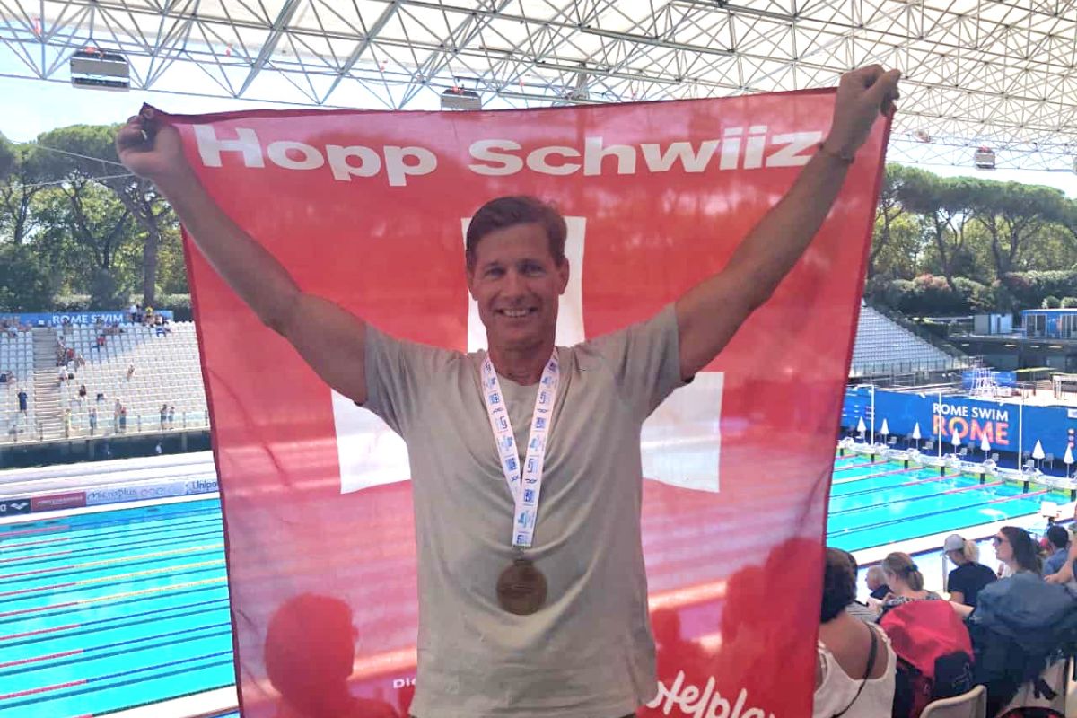 "Und? Wie hast Du Dir die Sommerzeit vertrieben?" fragte ich Martin Mitte August, als ich unseren Co-Präsidenten im Schwimmbad Mooshüsli wiedertraf, wo er allwöchentlich die Fähigkeiten von uns Breitensportlern zu optimieren versucht. "In der Toskana. Ist ne schöne Gegend, und wir hatten ne angenehme Unterkunft, mit Pool zum Relaxen und ein bisschen schwimmen." Ein bisschen schwimmen! Keine zwei Wochen später gratulieren wir nun unserem frisch gebackenen EM-Medaillengewinner zu seinem Doppelerfolg: Zweimal Bronze, in 1:10.81 über 100 m und in 2:55.57 über 200 m Schmetterling. Dazu ein toller 5. Platz über 50 m Schmetterling in 29.91.